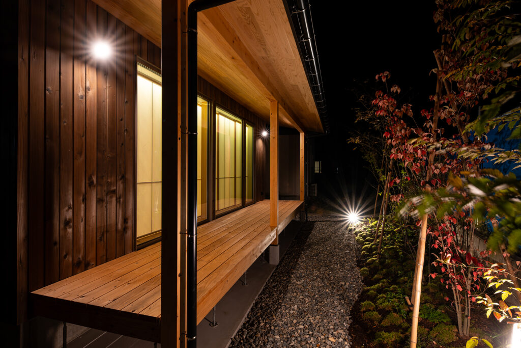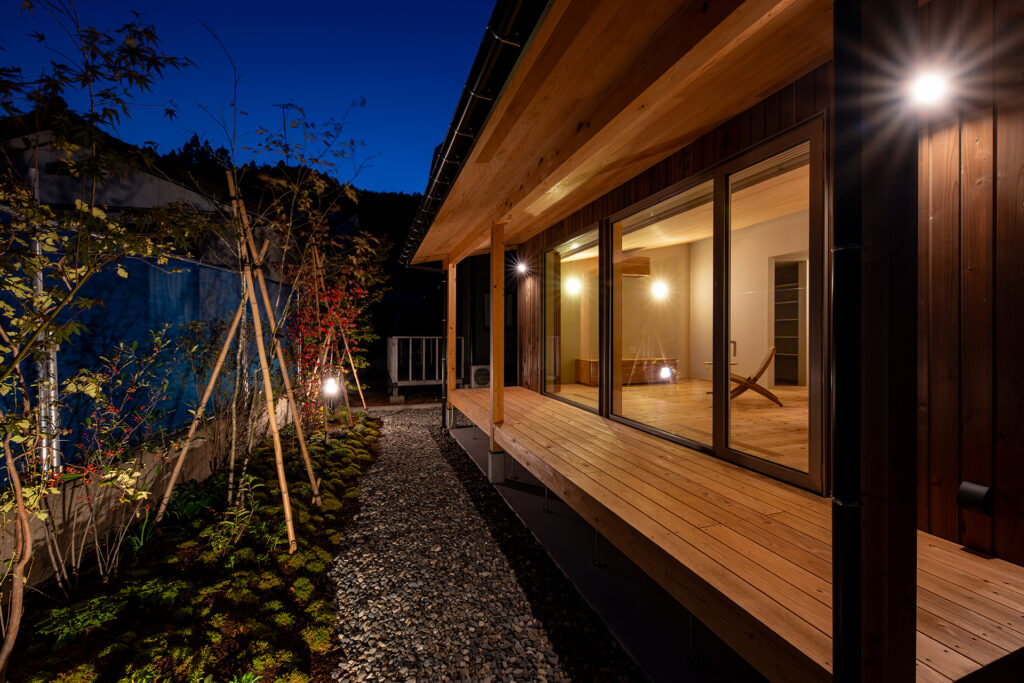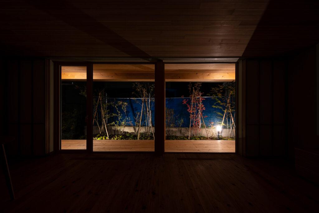 庭職人の小川俊彦さんが手掛けた庭は、夜になるとライトアップされ、幻想的な雰囲気を演出します。